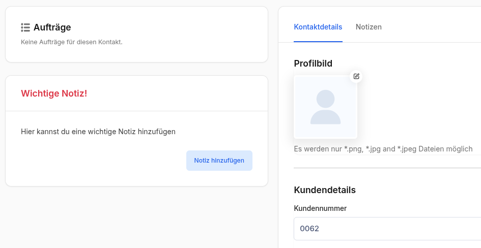 Klickst Du anschließend auf den angelegten Kontakt erscheint ein Fenster, in welchem Du Details wie Profilbild/Logo ergänzen kannst.